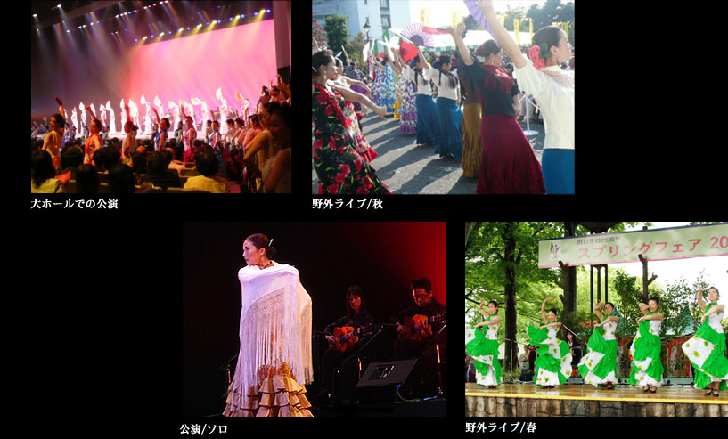 発表会等のみ生伴奏、というお教室が多い中、当アカデミーのレッスンは全てのクラスに生のギター、カンテ(歌)がつきます。フラメンコは演奏者や踊り手によってテンポが変動するもの。生演奏ならではの臨場感たっぷりのフラメンコを味わえます。
